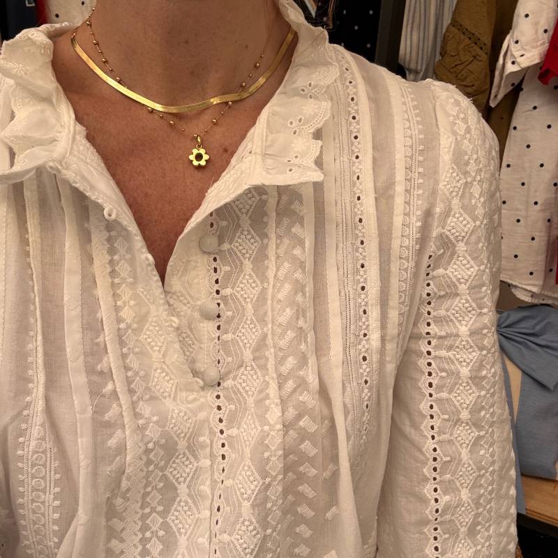 Blusa de algodón, completamente bordado. Manga larga. Botones forrados.
