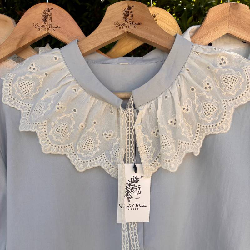 Blusa manga corta globo con un cuello bobo llamativo de broderie.