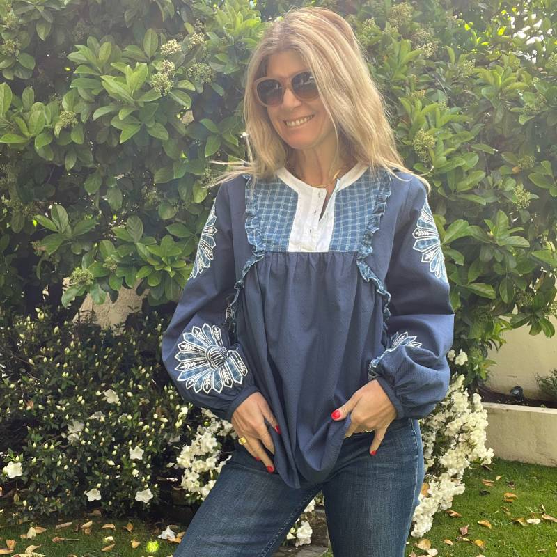 Blusa de algodón, manga larga. Color crudo. Broderie.
